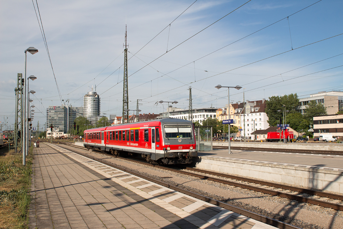 Nach seiner zweiten Fristverlängerung in Mühldorf vom 22.06.16 präsentierte sich 628 591-0 - vor ein paar Jahren getauft auf "Pfarrkirchen" - schön glänzend am Münchner Ostbahnhof. Dort ist für ihn der Wendepunkt, bevor es zurück über Grafing Bahnhof nach Wasserburg (Inn) geht. (München Ostbahnhof am Abend des 08.07.16 -> nur Mo-Fr möglich!)
