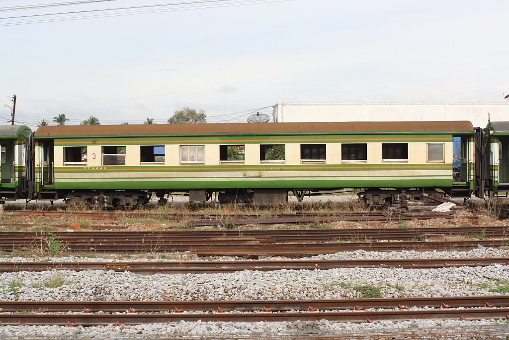 บชส. 225 (บชส. =BTC./Bogie Third Class Carriage) am 21.Mai 2016 im Bf. Surat Thani.