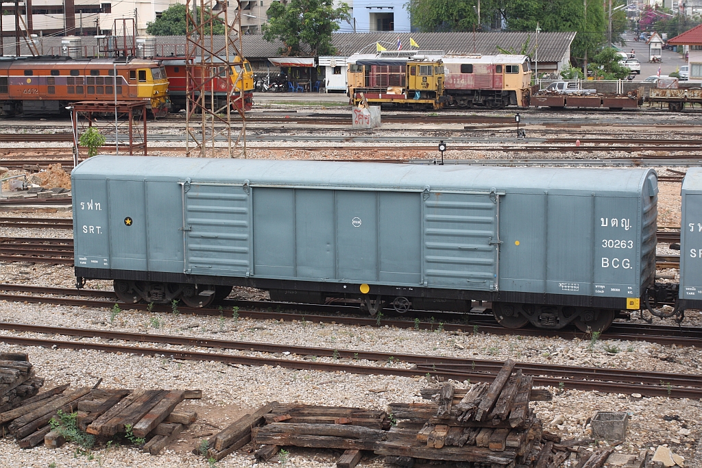 บ.ต.ญ. 30263 (บ.ต.ญ.=B.C.G./Bogie Covered Goods Wagon) am 24.Mai 2016 im Bf. Hat Yai.