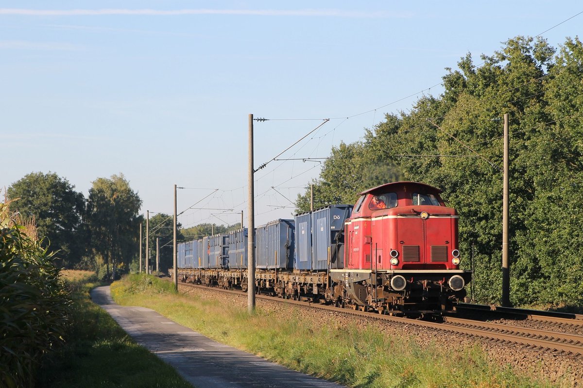Emsland III (211 011-2, Baujahr: 1961) der Emsländische Eisenbahn GmbH mit Müllzug Dörpen-Salzbergen bei Leschede am 2-10-2015.