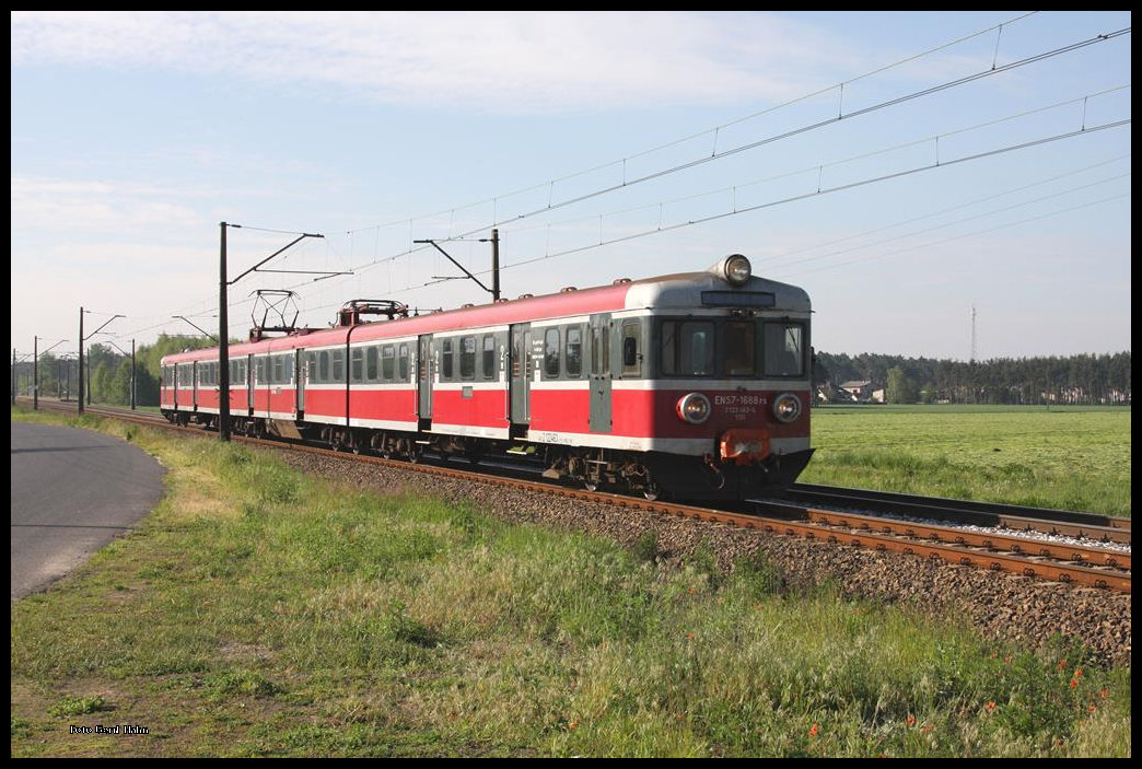 EN57-1688 war am 21.5.2016 um 8.12 Uhr bei Niedzwiedz in Richtung Poznan unterwegs.
