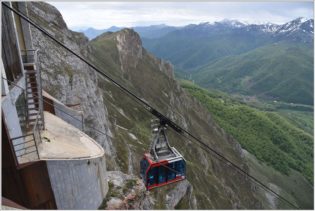 Teleférico de Fuente Dé im Nationalpark Picos de Europa im Herzen der Cordillera Cantábrica. Die Luftseilbahn führt von 1090m um 760m hinauf zur Bergstation auf 1850, von wo man einen herrlichen Blick auf die Picos de Europa 2600m hat. (24.06.2016)
