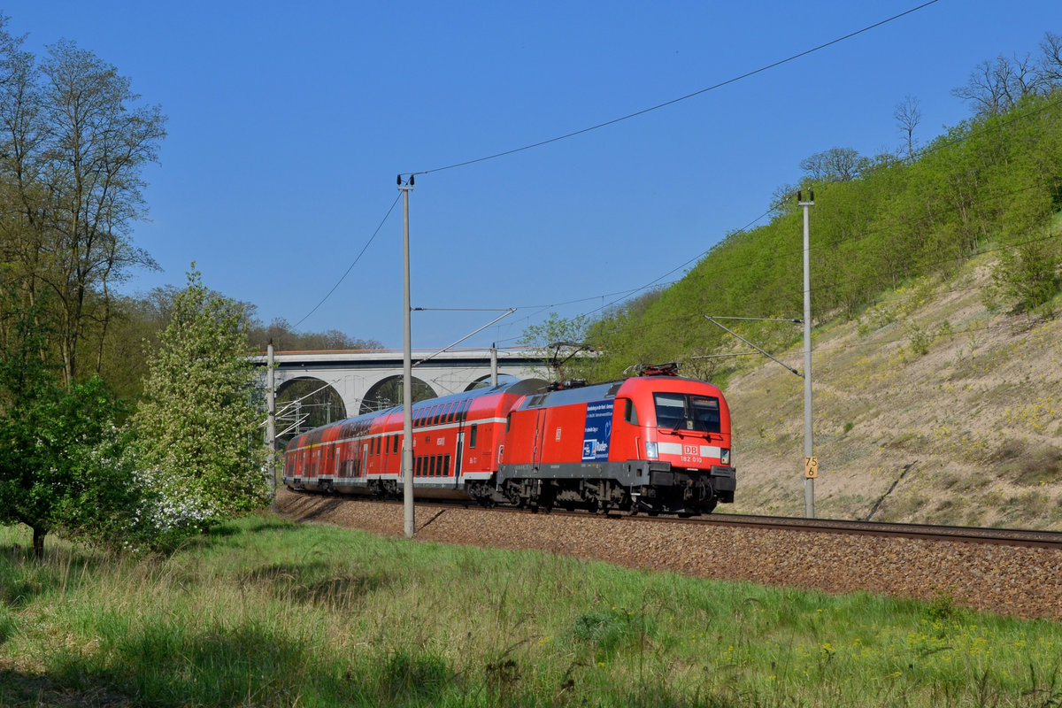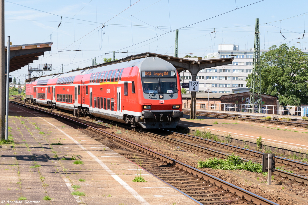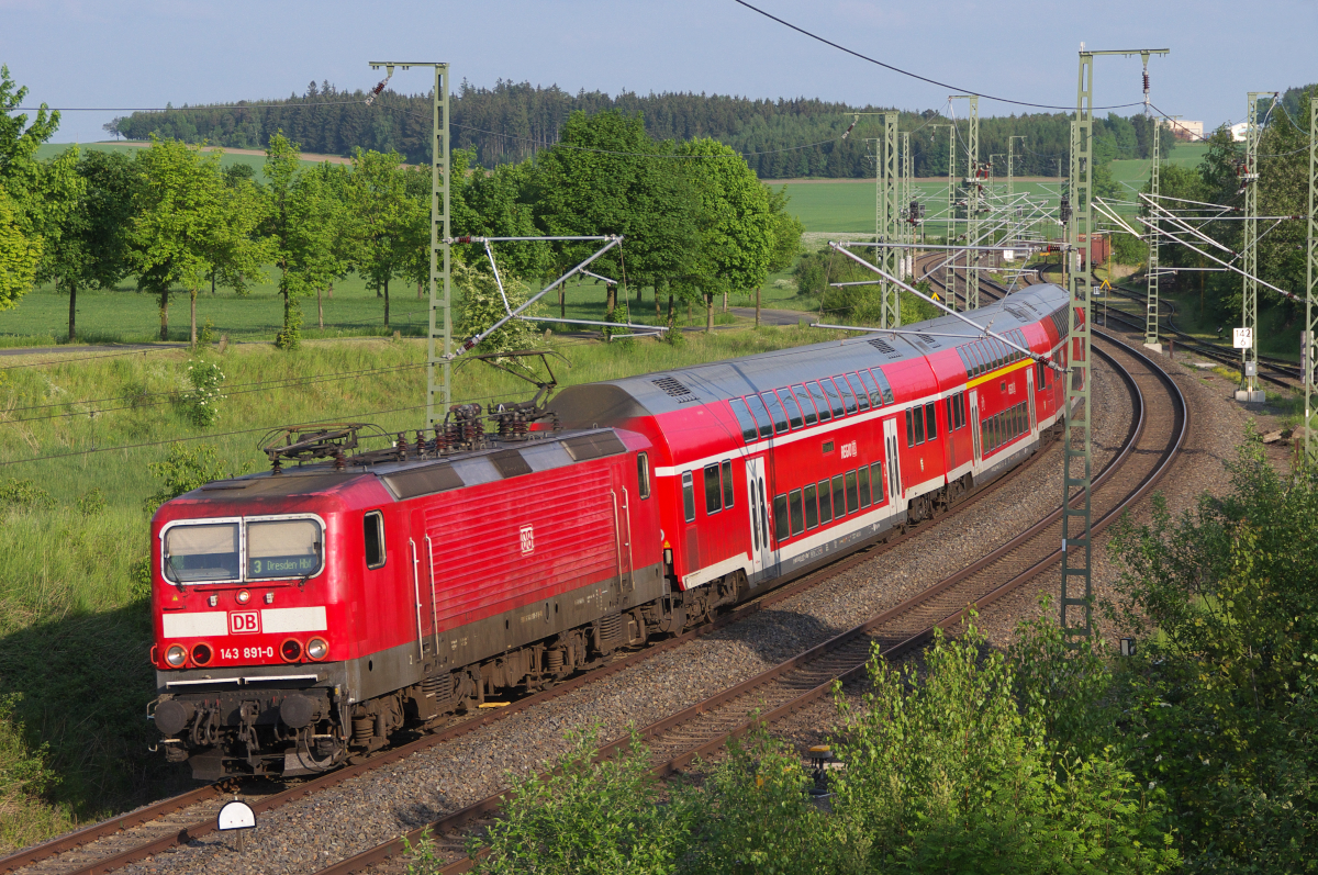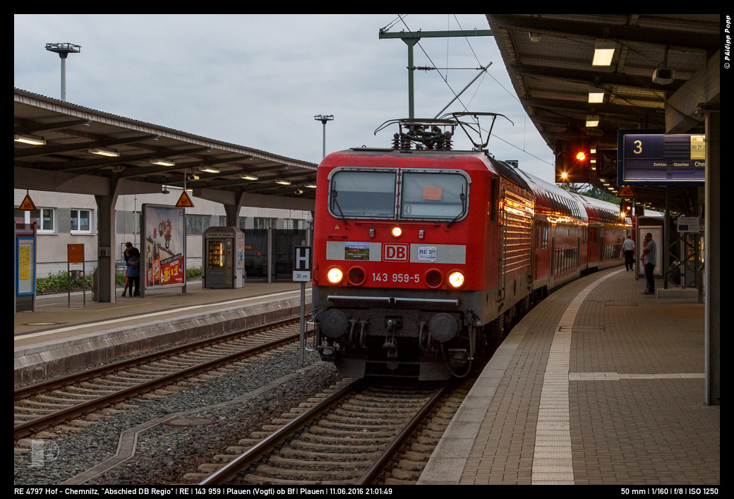 Der RE nach Hof am 06.05.16 in Chemnitz Hbf. Es schiebt 143 360.