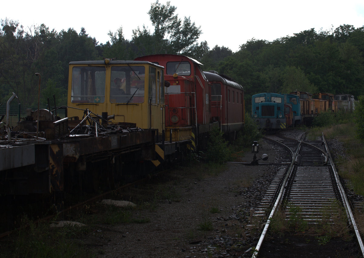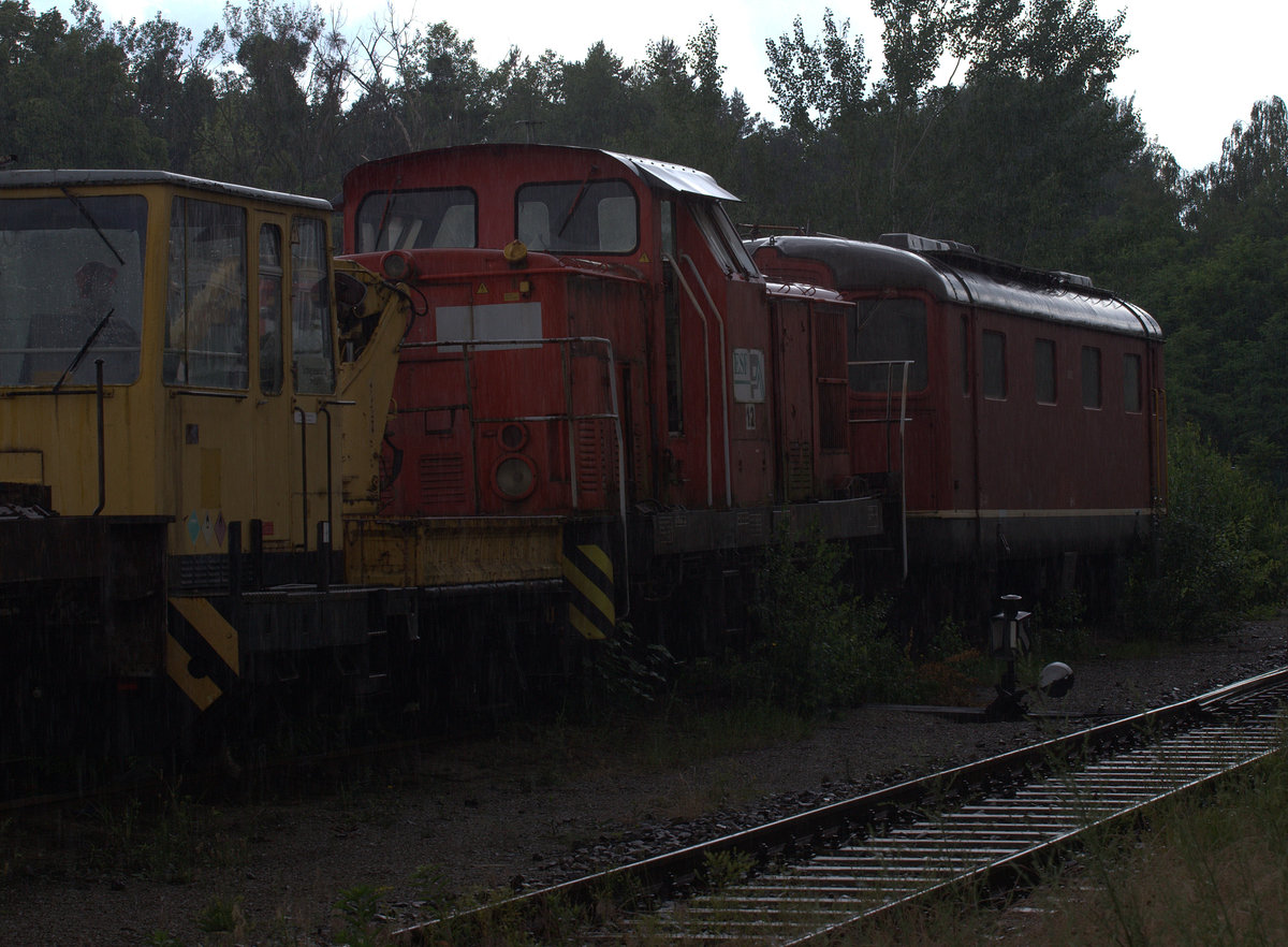 In der Mitte des Bildes wohl eine typische V-60, aber welches Fahrzeug befindet sich dahinter ? Abgestellt in Brieske bei Senftenberg. 12.06.2016 14:48 Uhr.