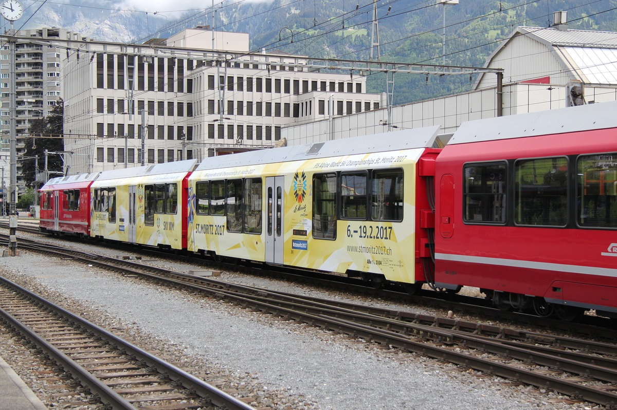 RhB - Steuerwagen mit Gepäckabteil BDt 1723 an der Spitze des einfahrenden Regio aus Arosa im Bahnhof Chur am 15.05.2016
