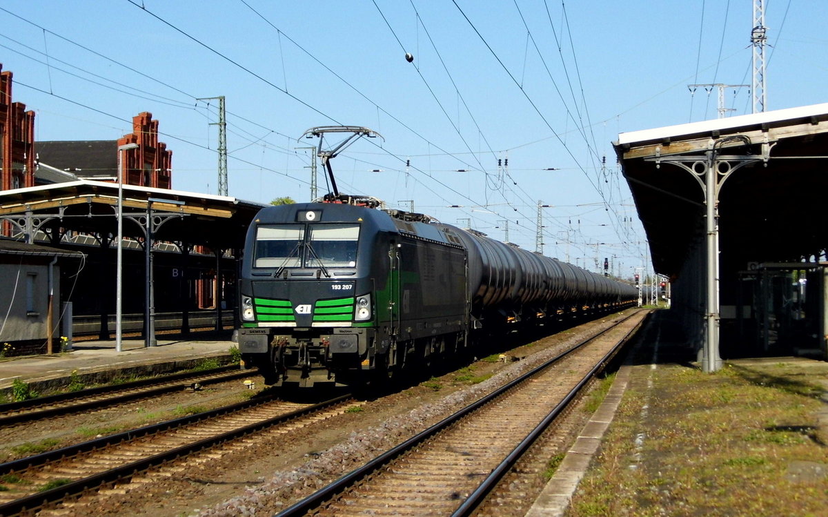 Am 05.05.2016 kam die 193 207-8 von der LTE Logistik (ELL) aus Richtung Magdeburg nach Stendal und fuhr weiter in Richtung Wittenberge .