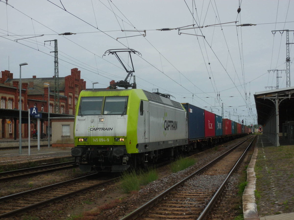 Am 12.06.2016 kam 145 094 mit einem Containerzug aus Richtung Magdeburg nach Stendal und fuhr weiter in Richtung Uelzen.