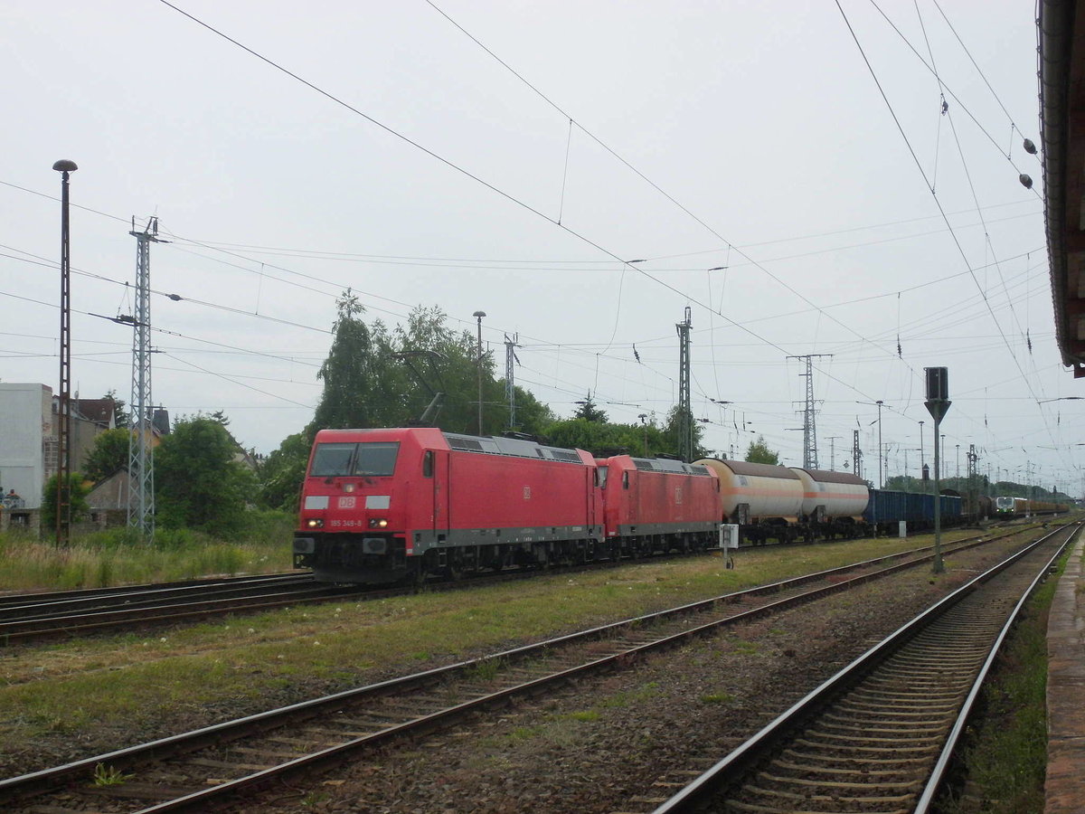 Am 12.06.2016 kam 185 349 mit 185 042 und einem gemischten Güterzug aus Richtung Hannover nach Stendal und fuhr weiter in Richtung Berlin.
