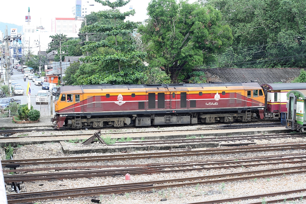 GEA 4546 (Co'Co', de, General Electric, Bj.1995) am 25.Mai 2016 vor dem EXP 42 (Yala - Bangkok) am 25.Mai 2016 im Bf. Hat Yai.