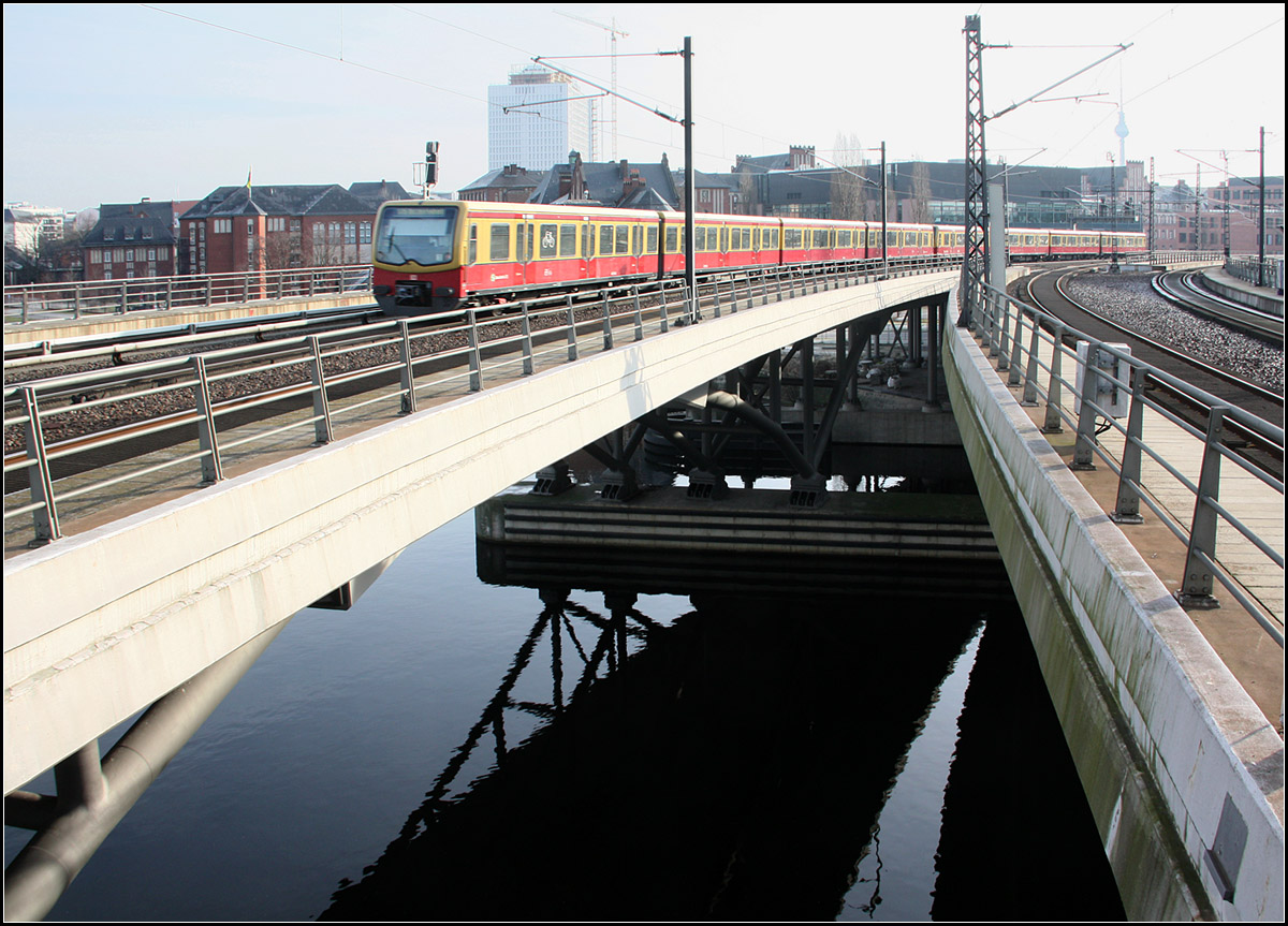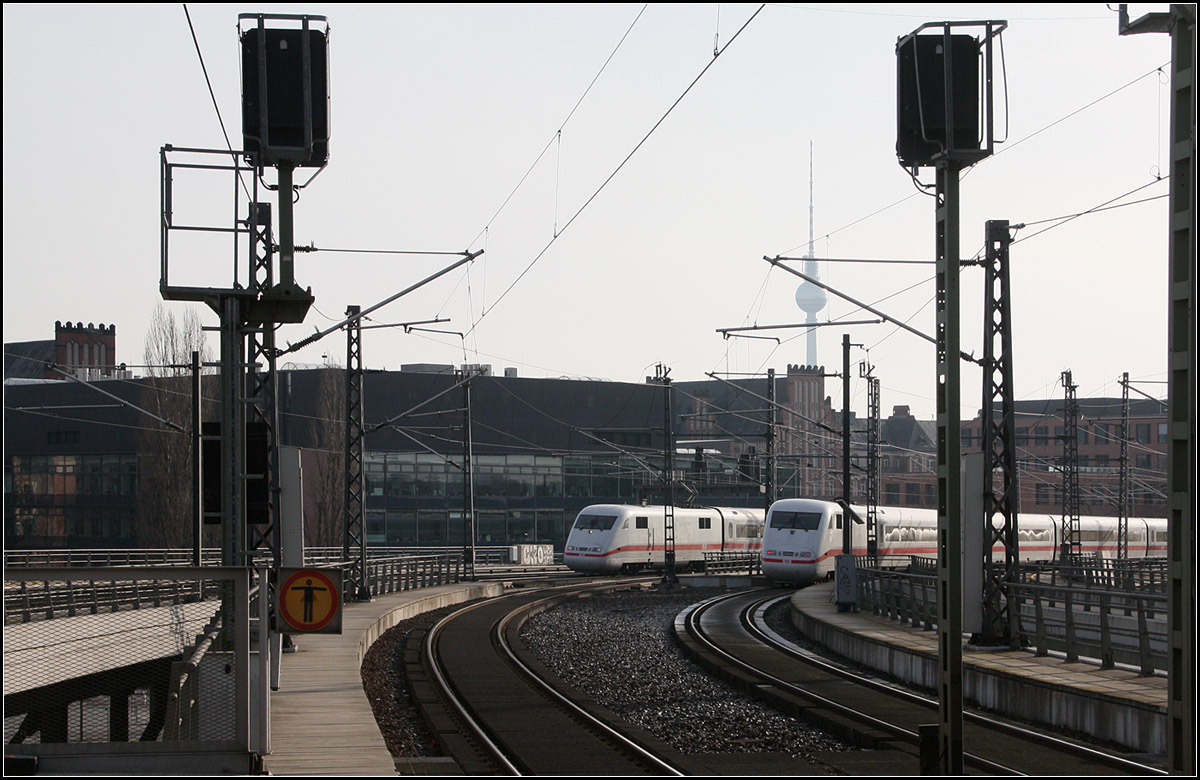 In werbewirksam unterwegs ist dieser ICE 3, dafür ist er zu verdreckt. Mitzieher aus einer parallel verkehrenden S-Bahn irgendwo zwischen Köln-Deutz und Köln-Mülheim.