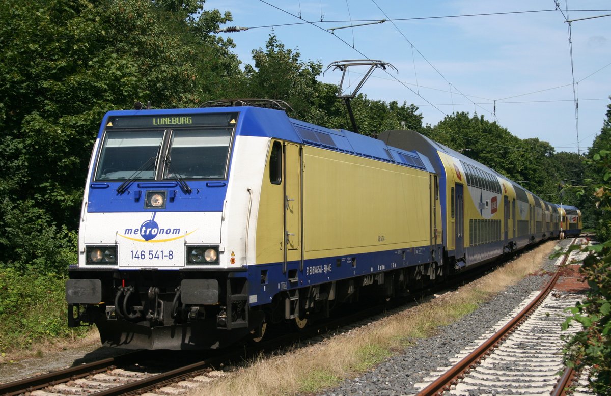146 541 mit ME 81615 (Hamburg Hbf–Lüneburg) am 01.08.2015 in Lüneburg Westseite, aufgenommen vom Bahnsteigende