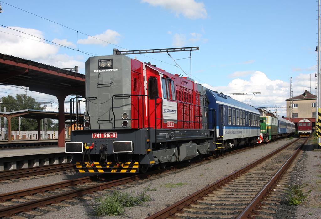 741516 von CZ Logistics stand am 17.06.2016 vor einem bunt gemixten Zug im Hauptbahnhof von Kolin.