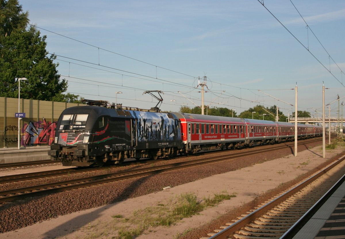 182 009 verlässt am 19.7.2016 mit RE1 (RE18120) von Berlin Ostbahnhof nach Magdeburg Hauptbahnhof den Potsdamer Hauptbahnhof.