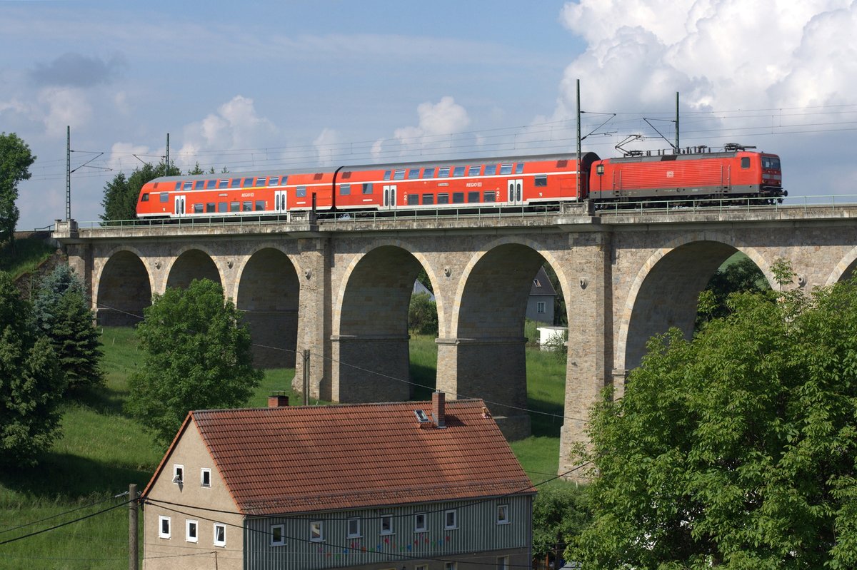 Knapp eine Woche bevor die MRB die RE- und RB-Verkehre auf der Relation Dresden-Zwickau/Hof und Chemnitz-Elsterwerda übernahm, überquerte 143 816-7 am 04.06.2016 mit RB 26913 Zwickau-Dresden, den Colmnitzer Viadukt