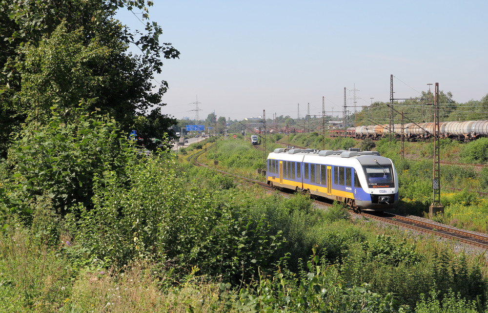 NWB 648 432 hat den Halt "Gelsenkirchen-Zoo" verlassen und fährt bei besten Lichtbedingungen vor die Kamera. Aufnahmedatum: 31.08.2015
