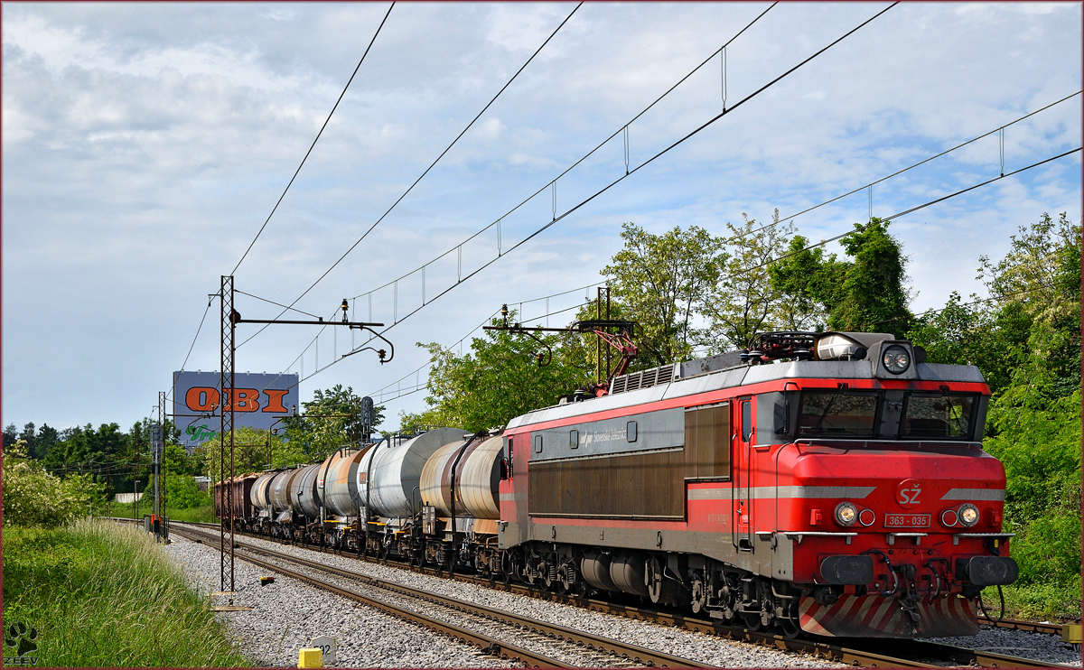 SŽ 363-035 zieht Güterzug durch Maribor-Tabor Richtung Norden. /19.5.2016