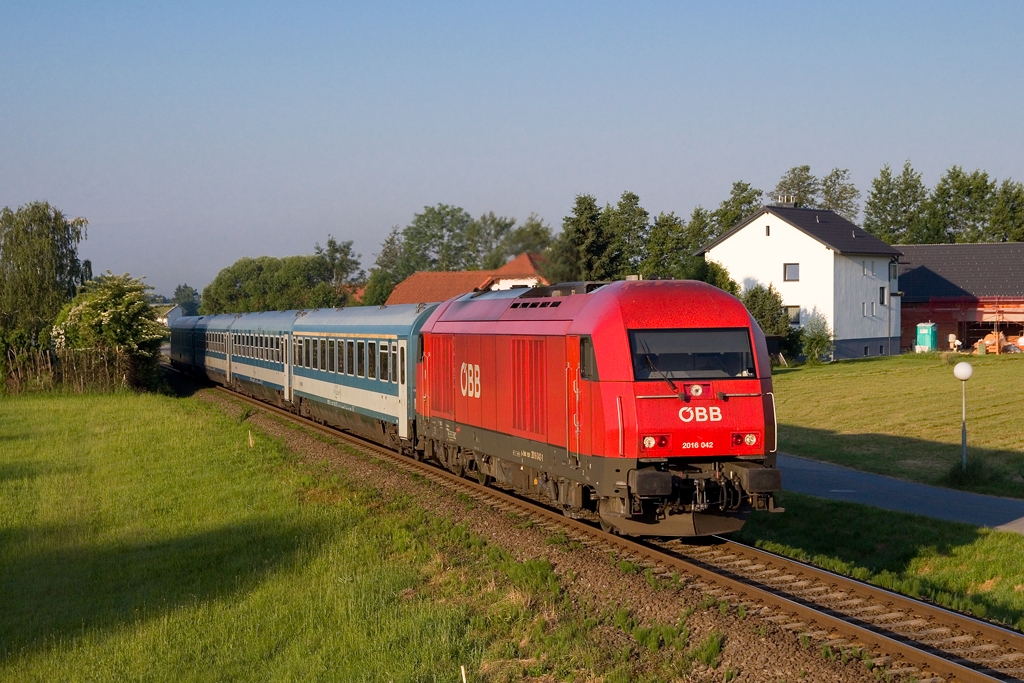 Am 6. Juni 2015 ist 2016 042 mit Regionalexpress 317 (Graz Hbf - Budapest Keleti) bei Raaba unterwegs.