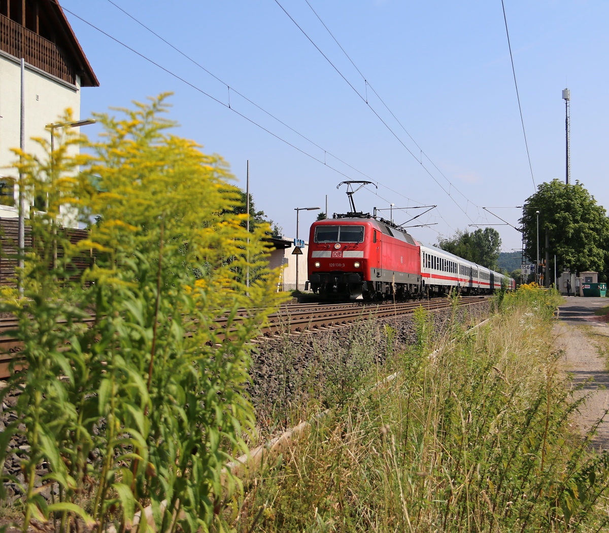 120 138-3 und 120 143 sandwichten am 26.07.2014 einen IC in Richtung Süden. Aufgenommen in Ludwigsau-Friedlos.