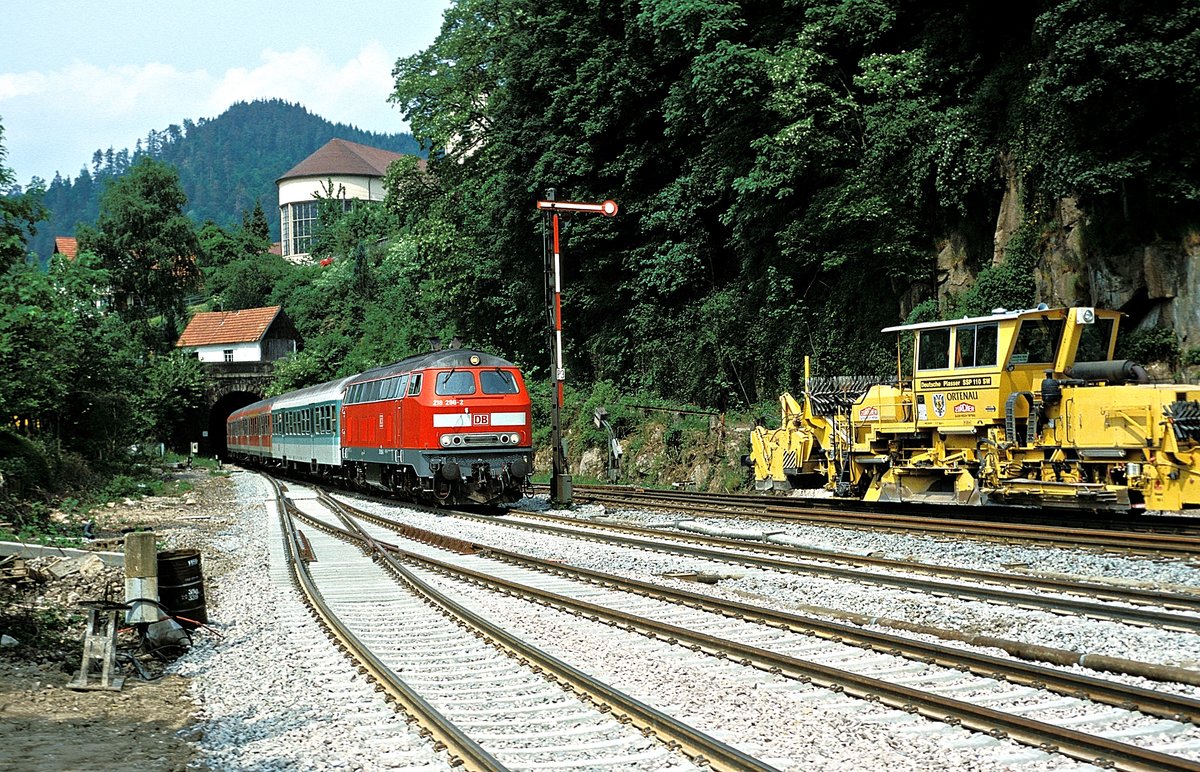 Ein ICE nach München legte sich am 25.5.05 vor dem ehemaligen Bahnhof Rosenbach in die Kurve.