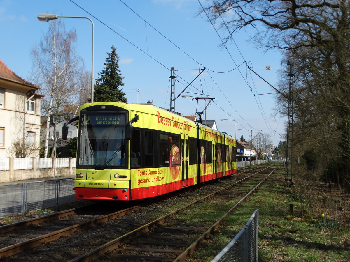 VGF Bombarfier S-Wagen 226 mit Bäcker Eifler Werbung am 26.03.16 in Frankfurt am Main