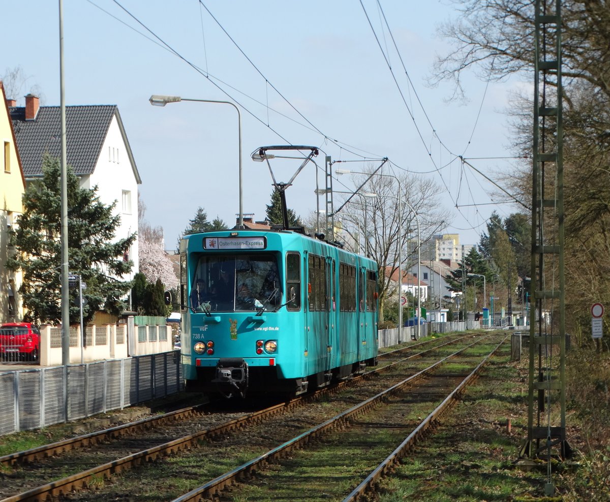 VGF Düwag Pt Wagen 738 als Osterhasenexpress in Frankfurt am Main Schwanheim am 26.03.16