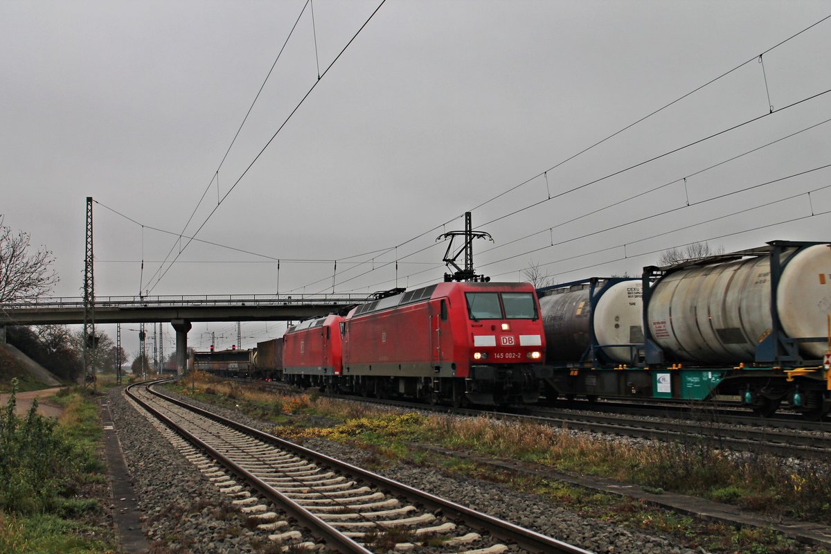Am 29.11.2014 hatte 145 002-2 die Aufgabe die 185 138-5 nach Haltingen zu bringen, als sie durch Müllheim (Baden) ihrem Ziel entgegen fuhr.