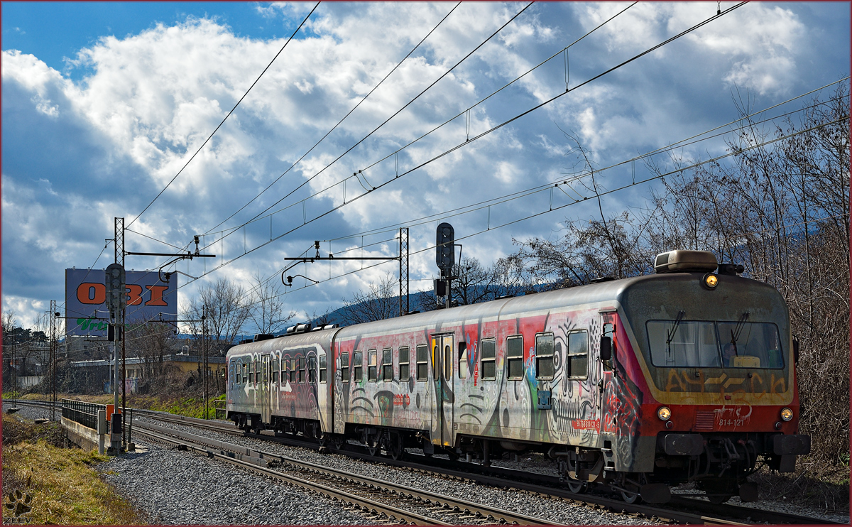 SŽ 814-141 fährt durch Maribor-Tabor Richtung Maribor HBF. / 24.2.2016