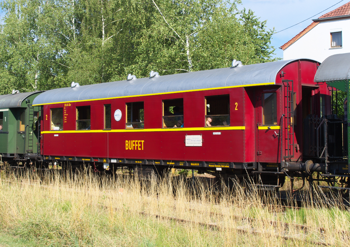 Die Firma Fuchs in Heidelberg baute den heutigen Buffet Wagen des MECL als Bauzugwagen im Jahr 1930 als Bi 29 28614 Stg. 2001 kam der Wagen nach Losheim zum MECL und wurde zum Buffetwagen umgebaut. 01.08.2015 im Bahnhof Bachem.