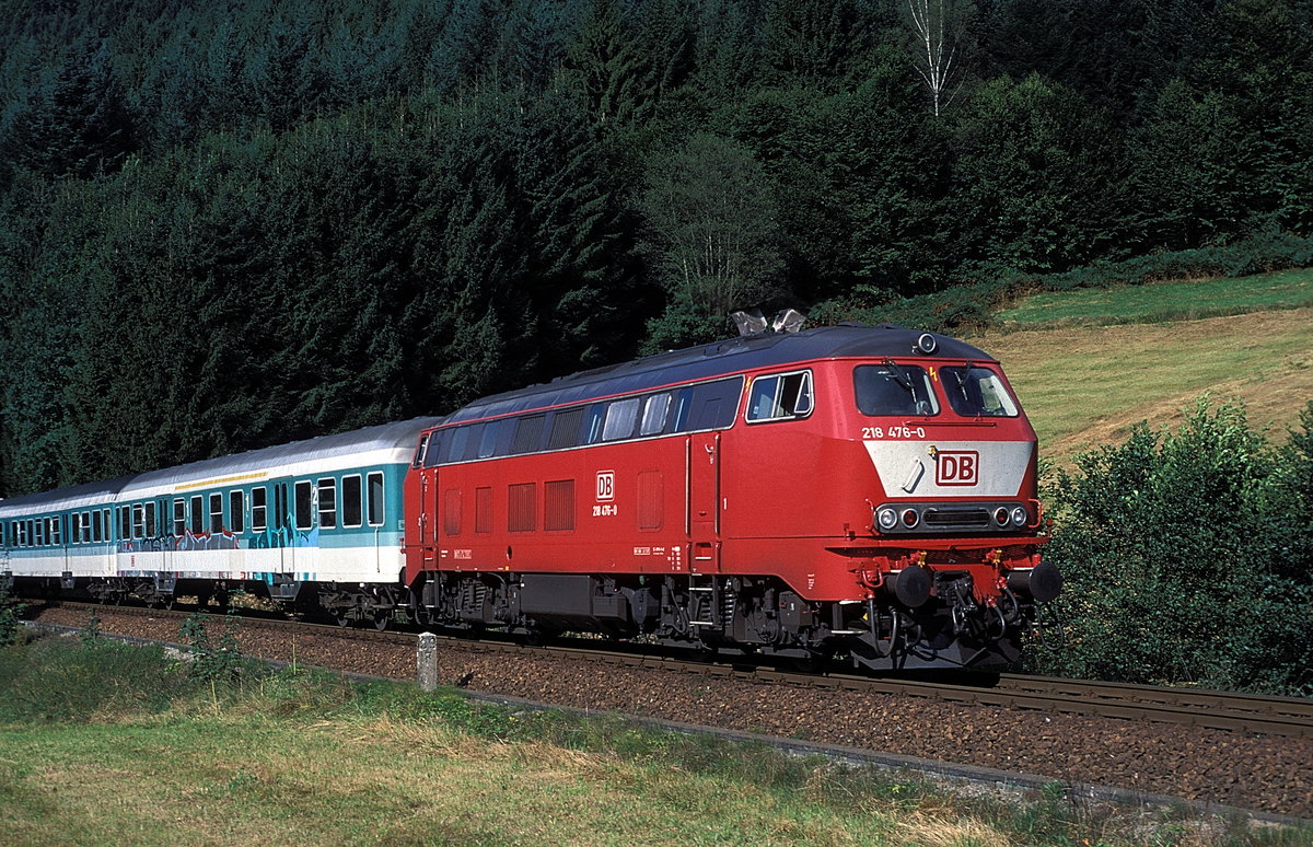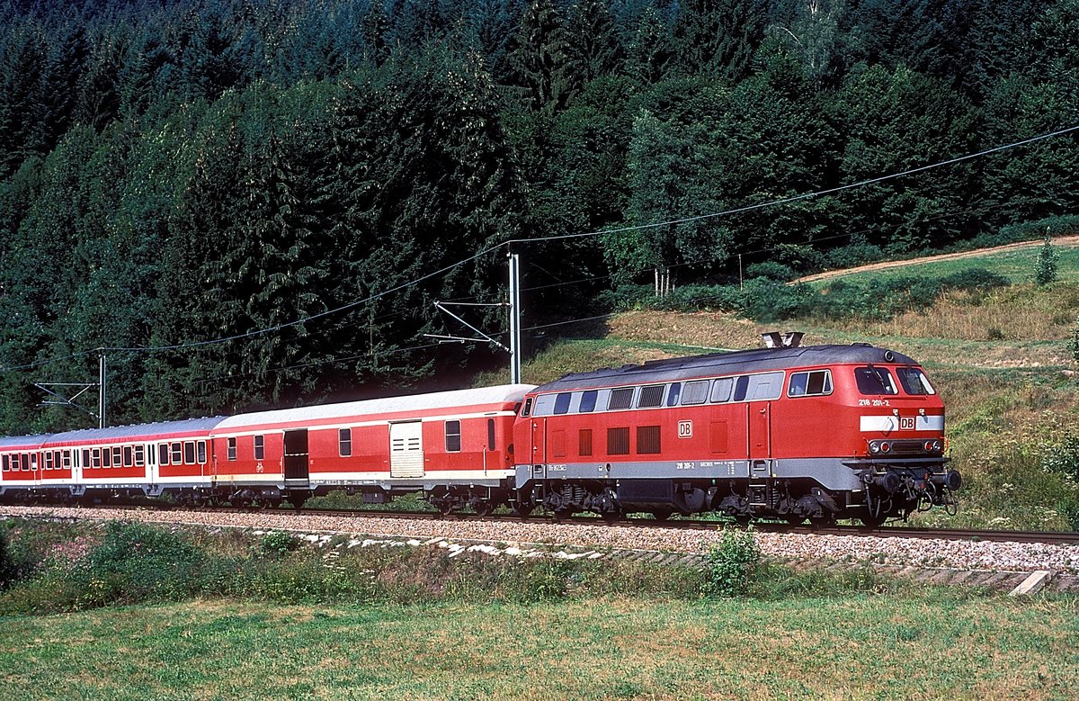 218 364 mit RE 3417 aus Saarbrücken im Hbf. Mainz - 31.10.1997