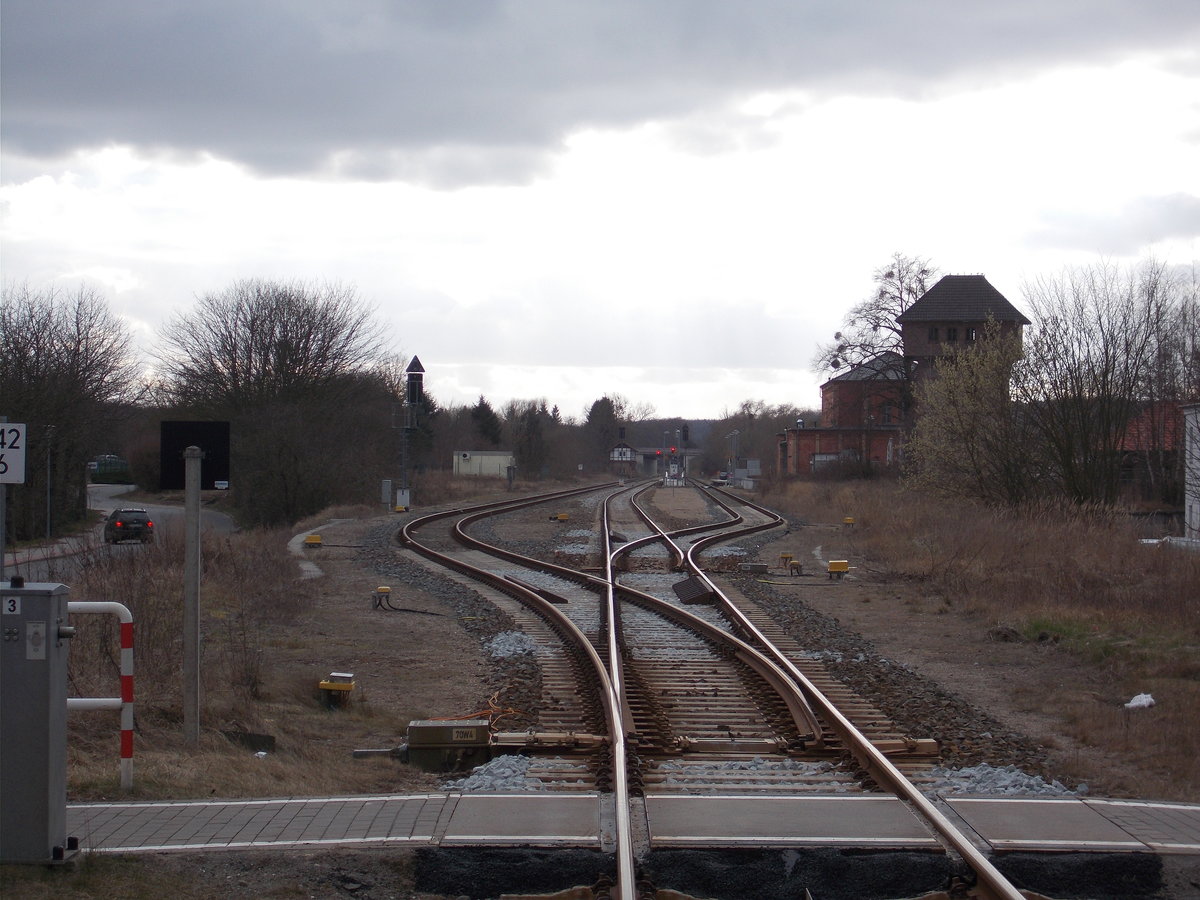 So sieht der Einfahrbereich von Teterow aus Richtung Neubrandenburg aus.Aufnahme vom Bahnübergang aus und aufgenommen am 20.März 2016.