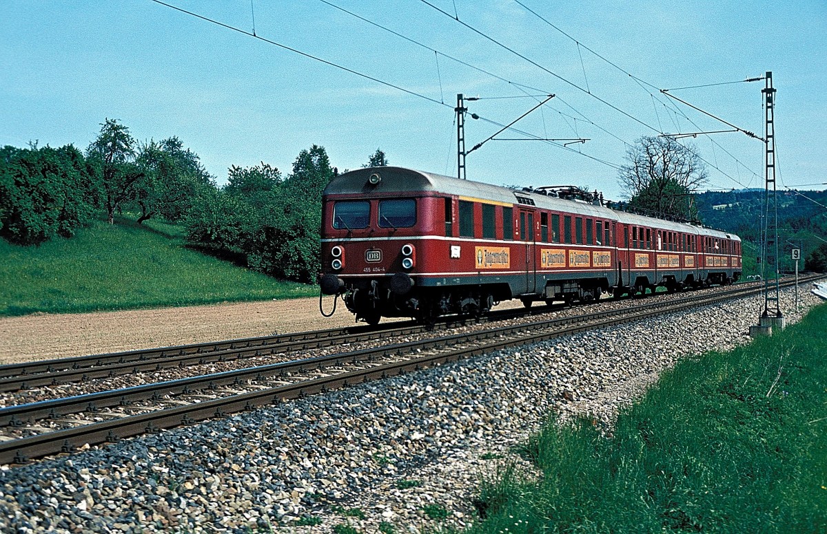 Landschaft im Wandel der (Jahres)Zeit (||) - 218 445-5 durchfährt mit dem EC 192, München - Zürich, am 21.06.2012 den Oberstaufener Tunnel, dessen Umgebung, nicht nur jahreszeitlich bedingt, mehr Bewuchs aufweist als 3½ Jahre später.