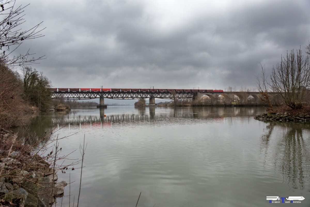 BR 185 von Railpool mit einem der vielen Altmannzüge am 02.03.2016 auf der Donaubrücke bei Mariaort