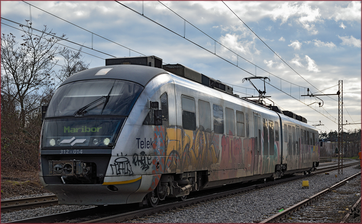 SŽ 312-014 fährt durch Maribor-Tabor Richtung Maribor HBF. /1.3.2016