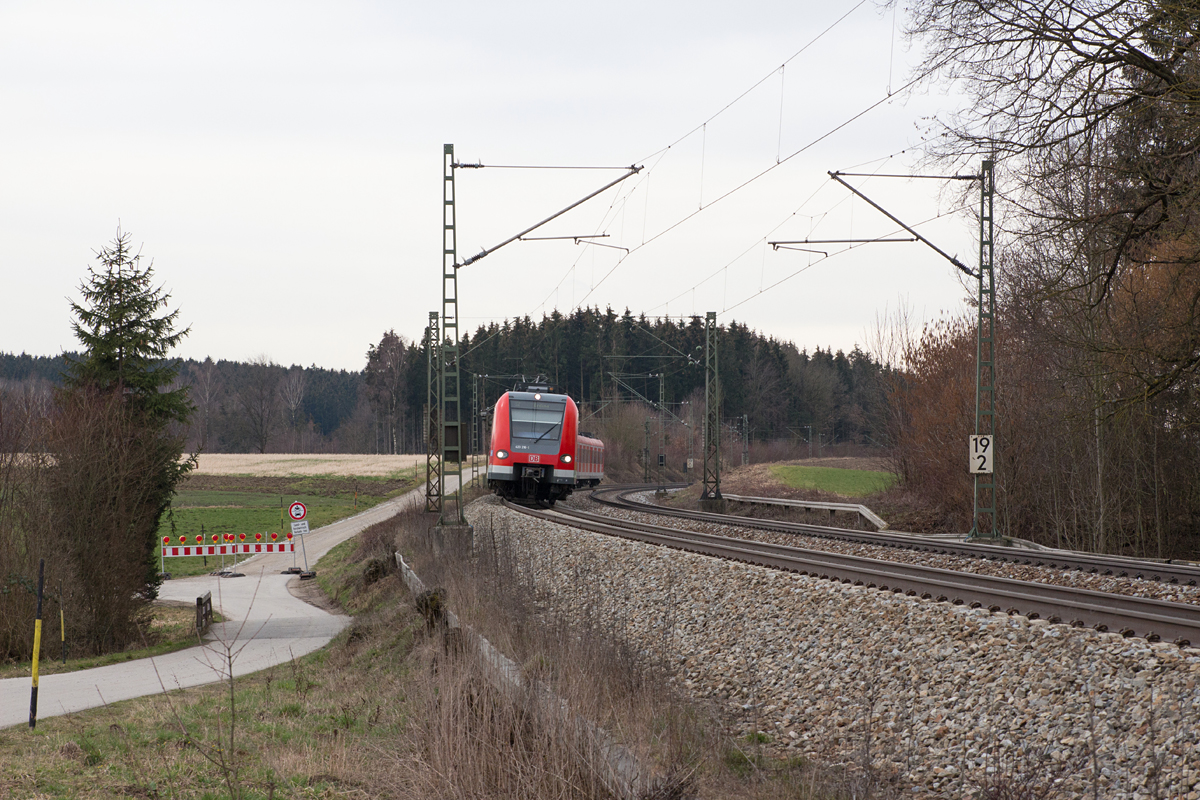 Am Kilometer 19.2 der KBS 940 wurde 423 216-1 als S2 nach Erding bei Markt Schwaben am 05.03.16 auf´s Bild gebracht.