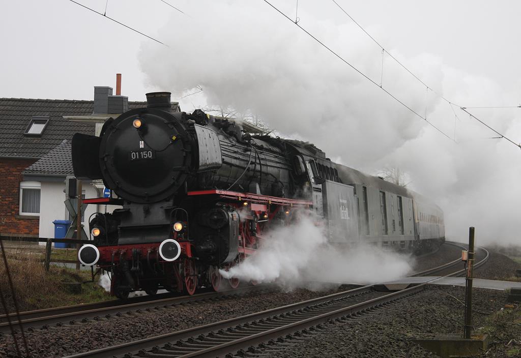 01150 war am 5.3.2016 mit einem Sonderzug nach Papenburg unterwegs und kam hier um 9.41 Uhr am Ortsrand von Lotte an mir vorbei.