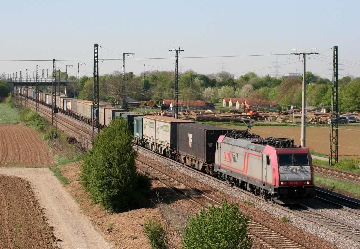 185 593 mit DGS 41666 (Novara–Genk) am 22.04.2015 in Müllheim (Baden)