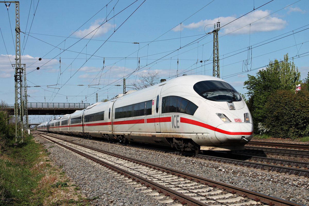 401 553-3 "Neumünster" am 18.04.2015 bei der Durchfahrt in Müllheim (Baden) gen Norden.