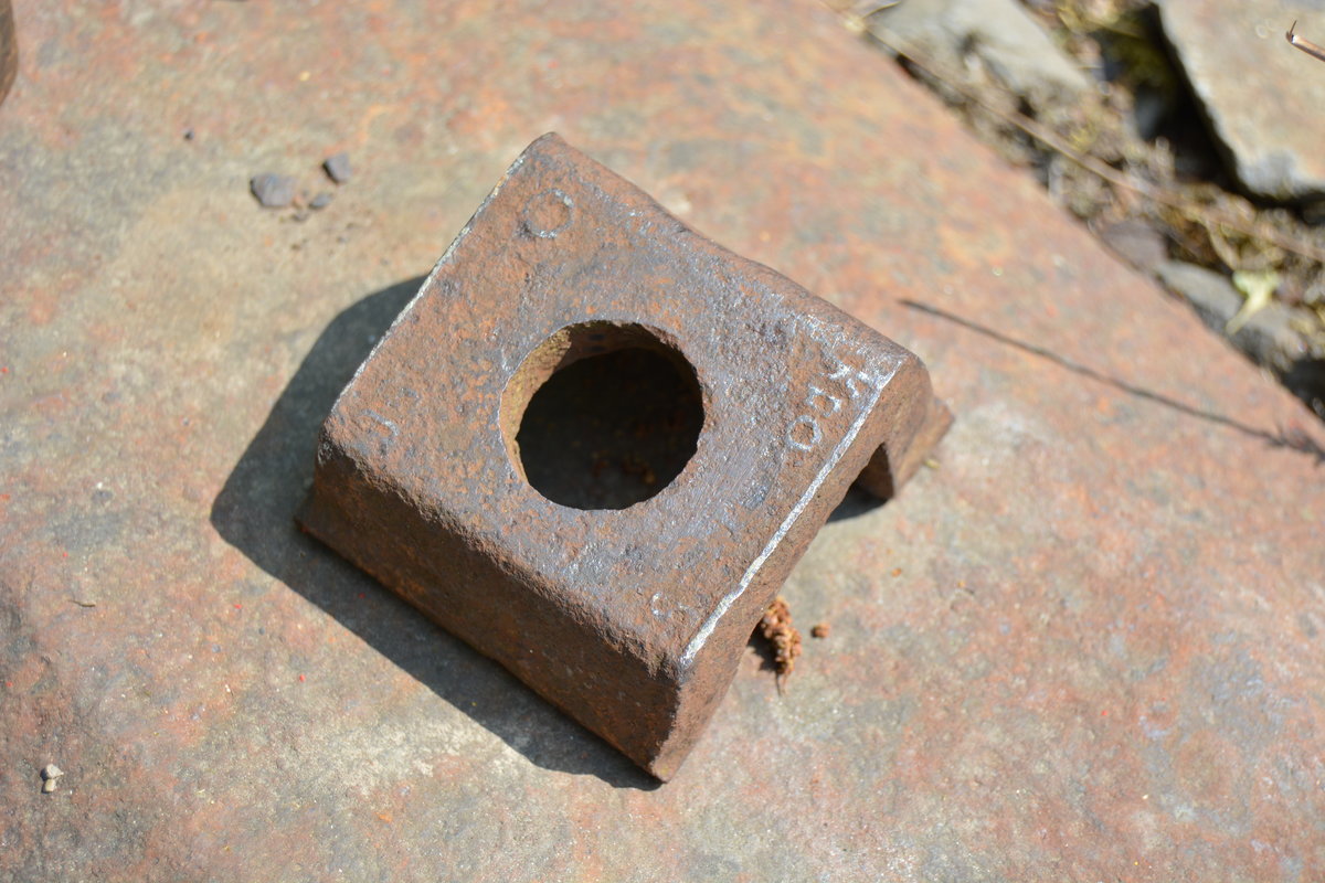 Auf fast jeden Teil der Schienenbefestigung steht die Kurzbezeichnung des Teilstücks drauf. Hierbei handelt es sich um eine Hs 26-65, eine Hakenschraube 26-65. Sie ist 65mm lang.