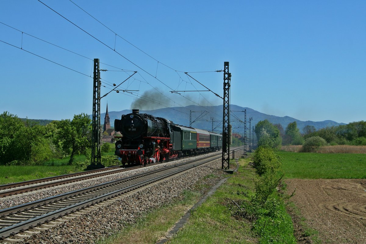 01 0509-8 mit dem Sonderzug D62142 von Leipzig HBF nach Putbus, bei Zschortau. 21.05.2016
