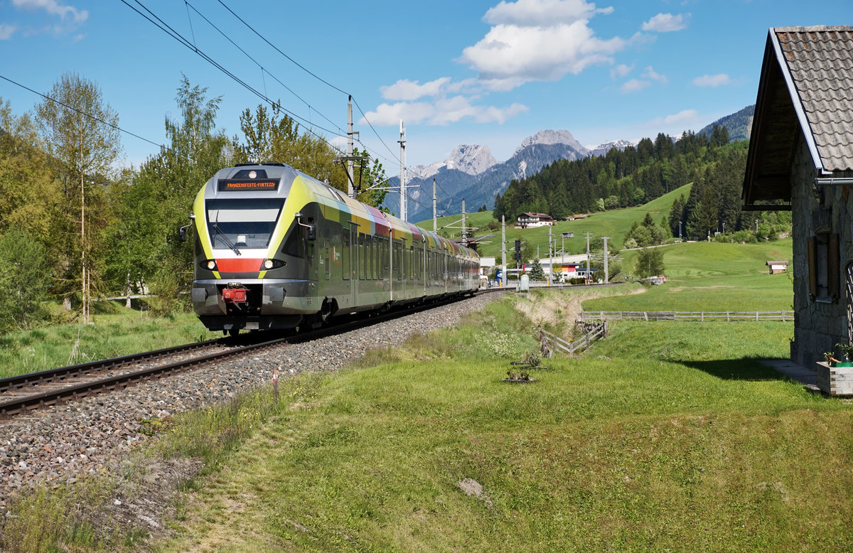 Nachschuss eines ETR 170 unterwegs als REX 1885 (Fortezza/Franzensfeste - Lienz), bei Sillian. Aufgenommen am 21.5.2016.