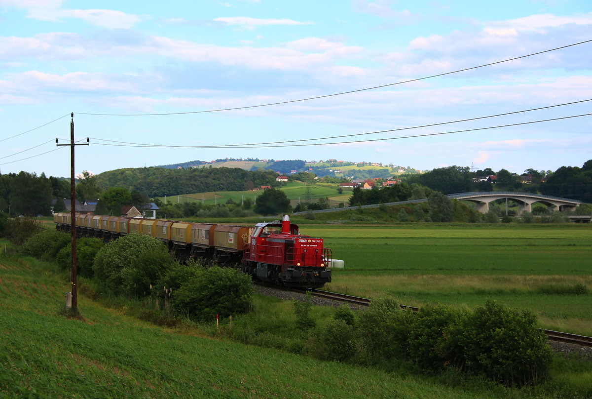 Noch ist es aber DH 1700.1 mit einem Leerabraumzug hier im Bild bei Gussendorf am 30.Mai 2016