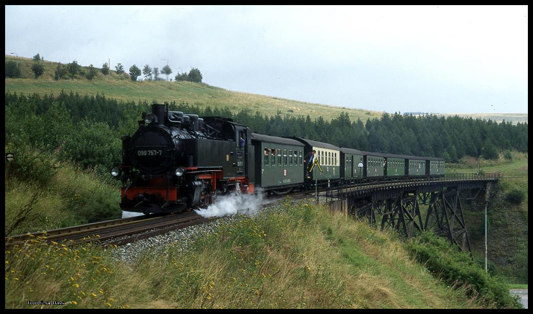 Am 2.9.1995 war 528283 in Aufarbeitung und stand "bunt bemalt" vor dem Lokschuppen in Schwarzenberg.