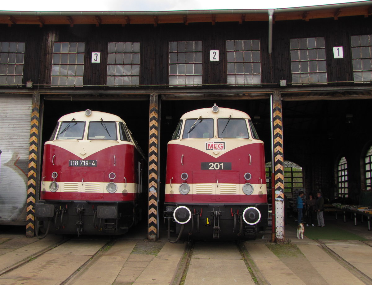EBS 118 719-4 + MEG 201 am 30.04.2016 beim Eisenbahnfrühling in den Geraer Eisenbahnwelten.
