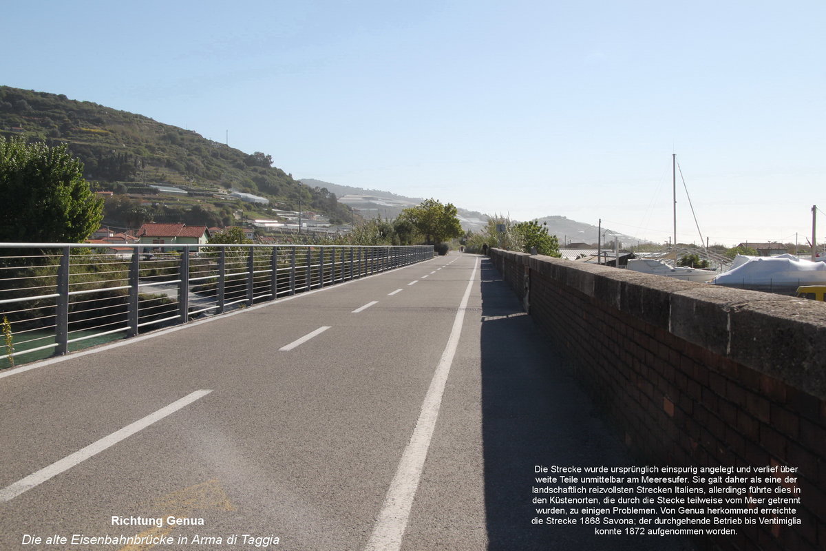 Ferrovia Ligure,ehemaliges Bahntrasse der Küstenstrecke bei Arma di Taggia.Blickrichtung Genua.Heute ein Velo u.Wanderweg.Mein Tipp: Mit Google Street View kann man die Strecke mit dem Fahrrad abfahren.27.04.16