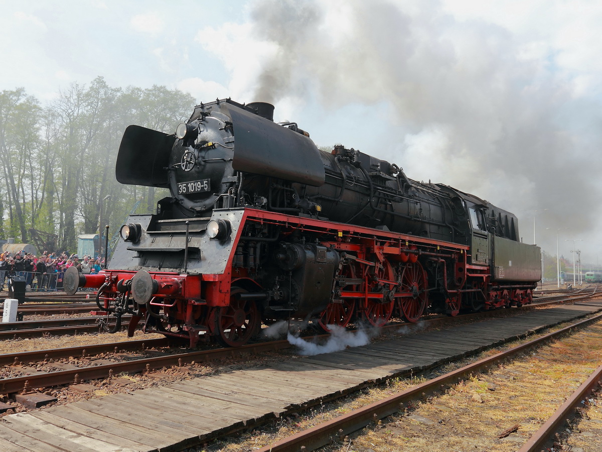 Wolsztyn , 35 1019-5 [(seit 2010: 90 80 0035 019-3 D-LDC) ex 23 1019 (DR)] des Lausitzer Dampflokclub bei der Dampflokparade am 30. April 2016.