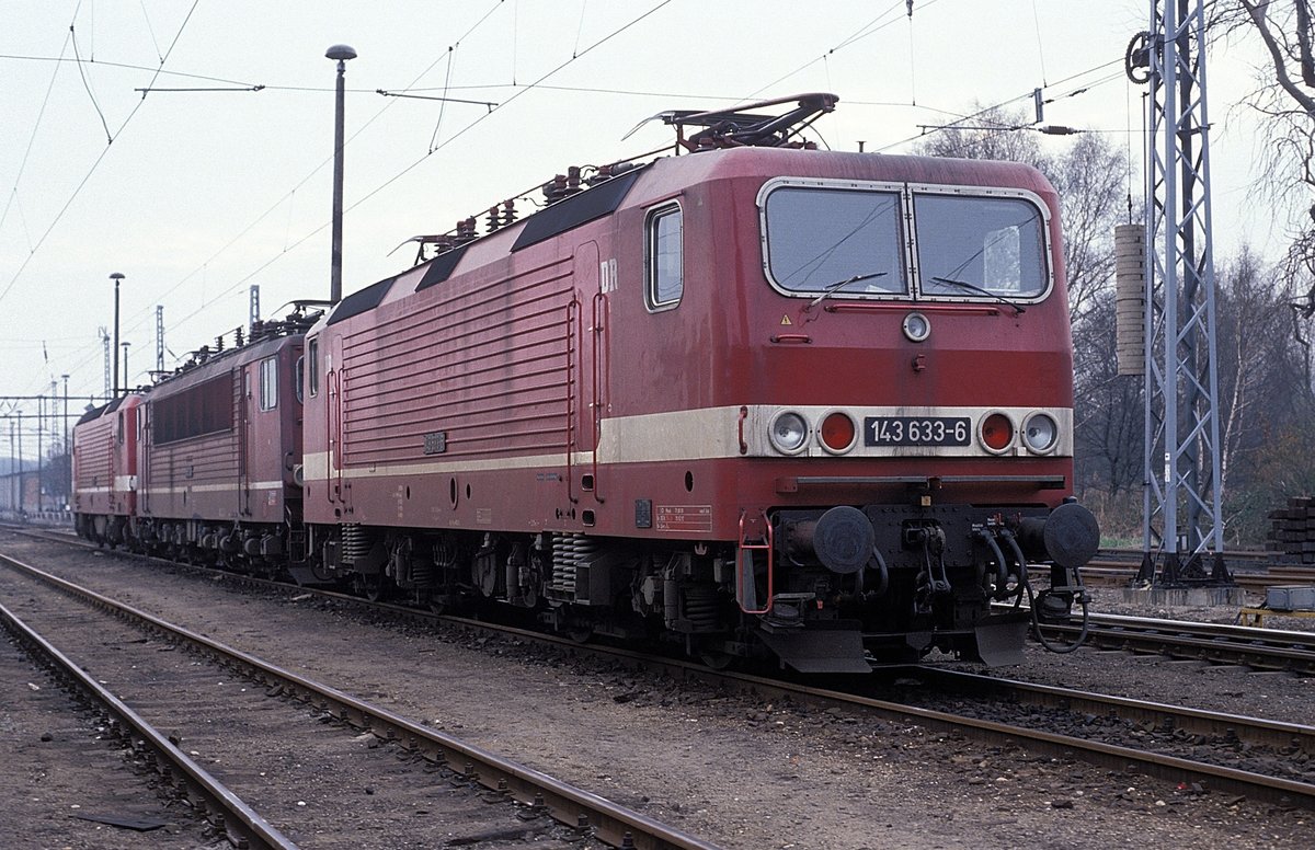 143 040-4 (RBH 127) und 143 950-4 (RBH 122) als kleiner Lokzug in Fahrtrichtung Süden. Aufgenommen am 30.08.2014 am Haltepunkt Dessau-Süd.
