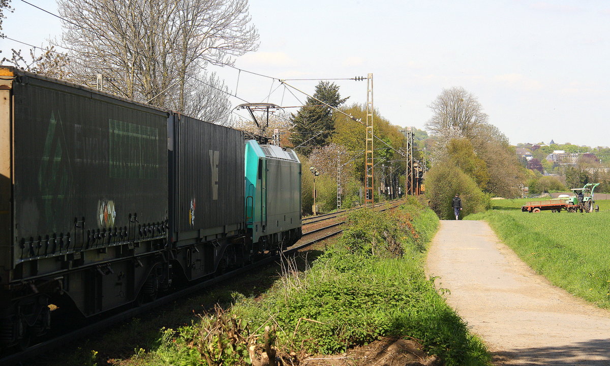 185 267 mit einem Güterzug am 30.04.2016 bei Fahlenbach.
