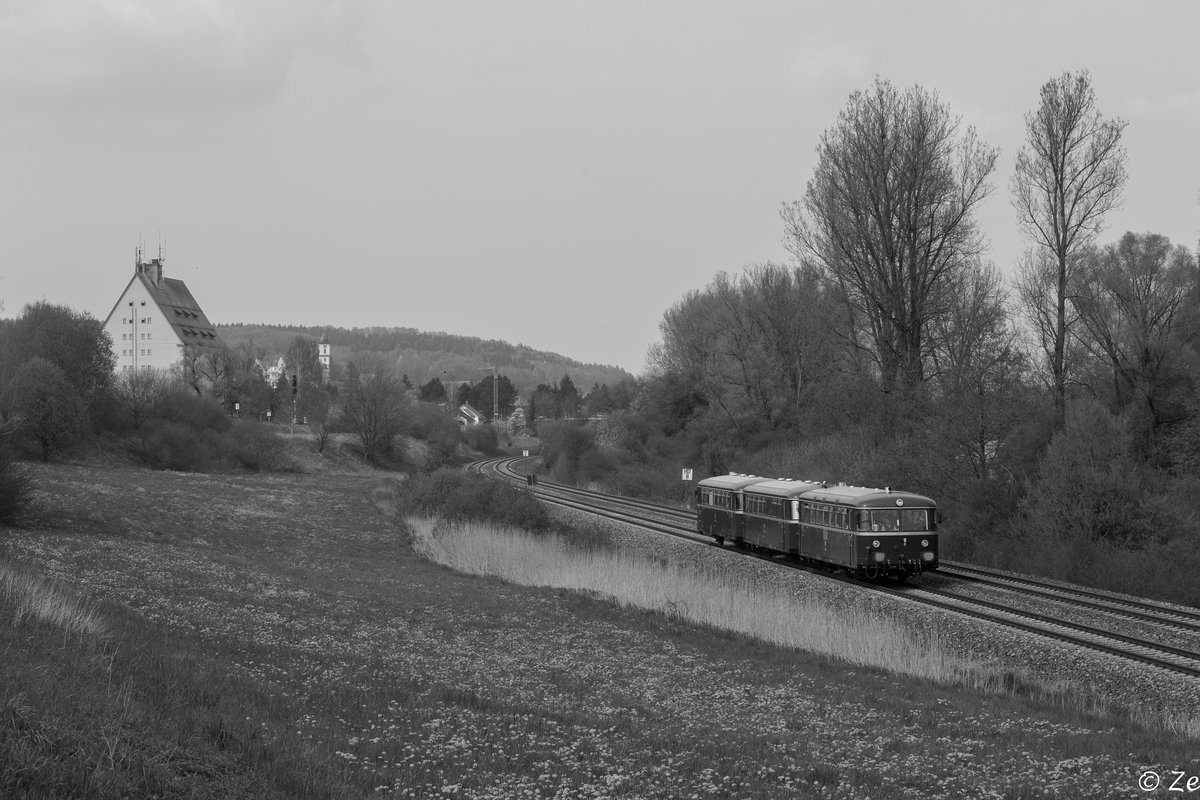 VT 798 652-4 mit 996 257 und 998 896-5 bei Aulendorf Zollenreute auf der Sonderfahrt nach Bregenz.