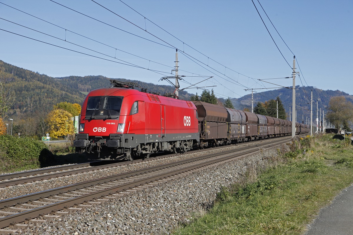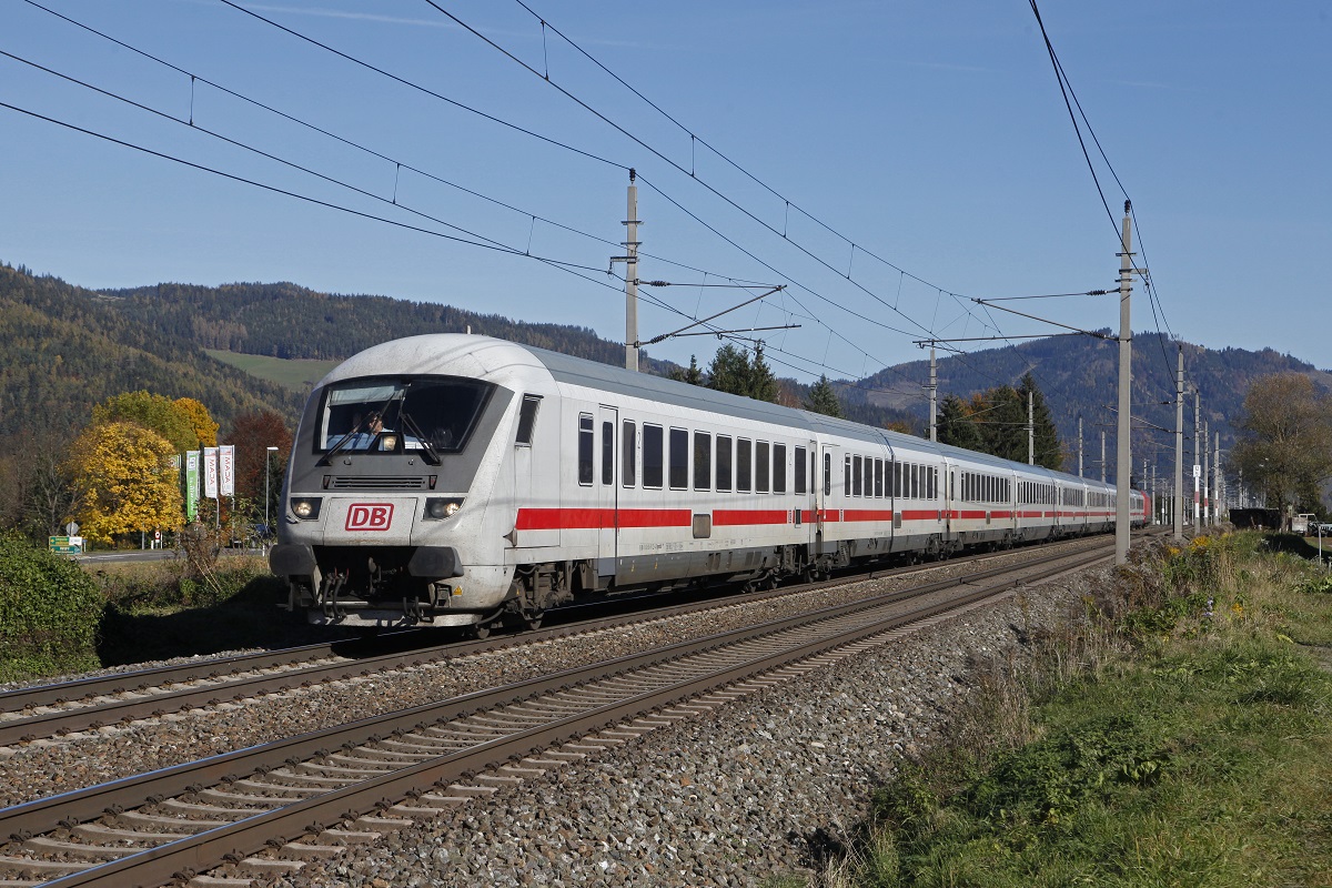 Es ist wieder Umleiterzeit im Allgäu! Auf Grund von Bauarbeiten an der Arlbergstrecke wurden vom 26.09. bis zum 12.10.2014 die Nachtzüge und einige Güterzüge von und nach Vorarlberg über die KBS 970 geführt. Dieses Jahr kommen neben 218-ern und  Ludmillas  auch ÖBB Maschinen der Baureihe 2016 zum Einsatz. Am 29. September 2014 wurde gleich der Urlaub und das gute Wetter genutzt, um die umgeleiteten Züge zu dokumentieren. Begonnen wurde der Tag an der Brücke bei Maria Thann. EN 414 von Villach nach Zürich HBF mit Kurswagen aus Zagreb und Belgrad, geführt von 2016.092 und 043, konnte bereits mit kompletter Ausleuchtung aufgenommen werden, überraschte mich allerdings mit seiner ordentlichen Länge von 13 Wagen.