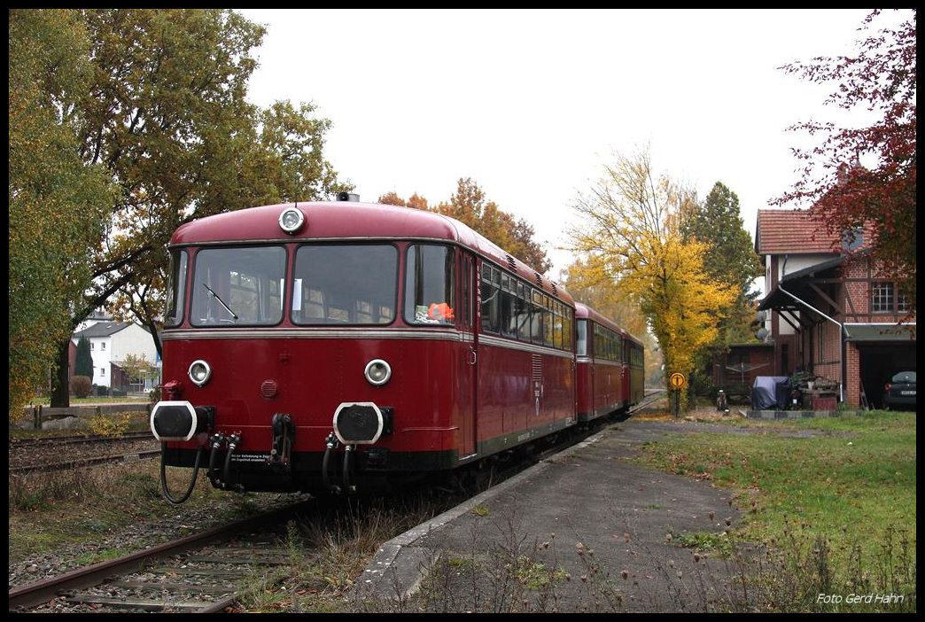 Seitenansicht auf den VT98 der ZLSM am Haltepunkt Werkplaats, bevor es weiter nach Vetschau geht. Sonntag  25.9.2016